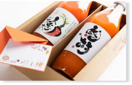 専用のギフトボックスはございませんが、専用の人参ジュース2本セット箱にお入れして、配送時に箱と熨斗が汚れないよう、さらに箱をプチプチで包んで丁寧にお届けします。尚、手渡しでお渡しする際に手提げ袋が必要な方は、ギフトが入る専用袋を枚数指定の上、無料でお付けいたします。人参ジュースギフト(幅30cm×奥行15cm×高さ33.5cm)がぴったり入るサイズです。