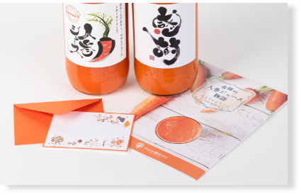 ジュースに使用している人参や 生産者の出口崇仁農園のことなど、 話題づくりのお手伝いに 是非ご利用くださいませ。