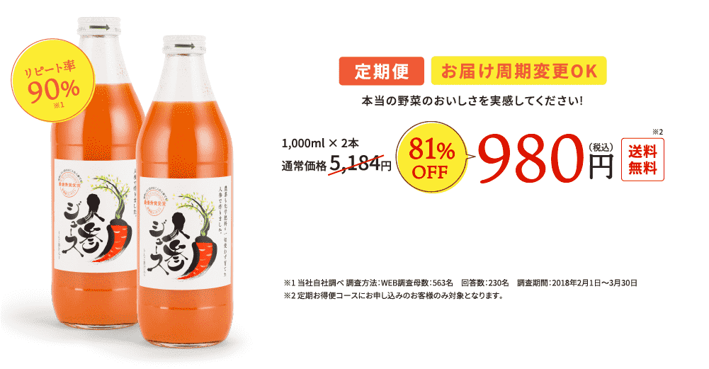 奇跡の人参をギュッ!!本気でおいしいジュースが980円でお試しいただけます!